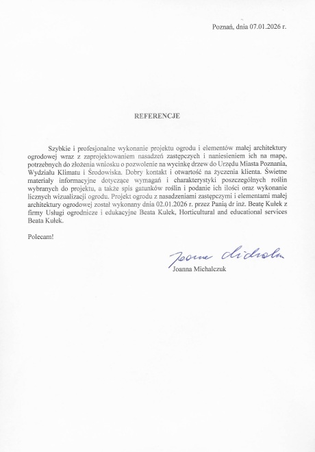 Projekt kwietnika, rabaty, tarasu lub balkonu. Cena obejmuje projekt w/w terenu o powierzchni do 20 m2. Należy przesłać jego szkic z wymiarami i zaznaczyć na nim kierunek północ oraz kilka jego zdjęć na e-mail. Wówczas wykonam projekt zagospodarowania terenu ze spisem roślin i jego wizualizacją. | 260,00/szt. |